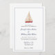 Faire-part de mariage illustré à voilier aquarelle de style vintage avec un fond blanc croquant. Idéal pour les mariages sur le thème nautique, plage, destination, Caraïbes, croisière.