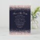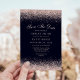 Annoncez votre mariage avec cette élégante carte de faire-part de mariage avec un fond bleu marine luxueux et une cascade de confettis or rose scintillants. Le design moderne et minimaliste est parfait pour les couples qui apprécient une touche d'éclat et de sophistication. Personnalisez-le avec vos noms et date de mariage pour créer un souvenir unique que vos invités garderont précieusement.