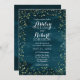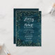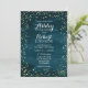 Faire-part de mariage de nuit étoilée. Des étoiles dans le ciel nocturne encadrent cette élégante invitation mariage à thème mariage soirée. Étoiles en faux or sur un arrière - plan d'aquarelle turquoise bleu profond permet au texte mariage blanc de se démarquer.