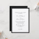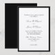 Elégante invitation de mariage avec script classique et texte brut. Introduction générale : le plaisir de votre entreprise est demandé au mariage de. Texte noir sur un arrière - plan blanc à l'intérieur d'une bordure noire. Le dos est noir.