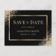 Élégante carte postale de faire-part de mariage noir et or. Articles assortis disponibles.