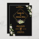 Faire-part de mariage noir et or avec fleurs
