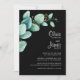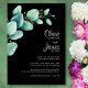 Invitation vos amis et proches à votre mariage avec cette invitation noire moderne avec des feuilles d'eucalyptus vert aquarelle.
