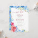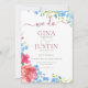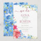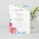 Cette création comprend un bouquet fluide d'œillets roses foncés, pêche et jaunes et de myosotis bleus. Simple et doux, ce design est parfait pour les mariages informels à semi-formels. Cette carte fait partie de la suite de cartes Carnation & Forget Me Nots Wedding créée par Simply Farmhouse Press.