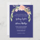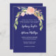 Ce faire-part de mariage de printemps de la Marine est parfait pour un mariage moderne. L'élégant design moderne de printemps ou d'été présente une atmosphère rustique, avec d'élégantes pivoines rose pastel couleur aquarelle et des feuilles verts sauge sur un arrière - plan de marine.