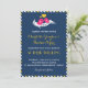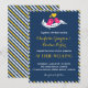 Invitation vintage bleu marine, jaune, rose et blanc avec deux oiseaux amoureux chantant une chanson d'amour. Le dos de la carte est orné d'un motif à rayures mignon et amusant. Un design d'invitation doux et beau pour une douche de mariée, une baby shower, un anniversaire, un mariage, une fête de fiançailles et bien plus encore. Personnalisez le texte pour toute occasion spéciale.