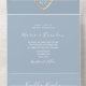 Voici notre élégante invitation de mariage tout-en-un dans une teinte bleue poussiéreuse captivante. Avec les initiales du monogramme de la mariée et du marié à l'intérieur d'un cœur de corde dorée, cette invitation dégage une sophistication moderne et un charme intemporel.