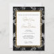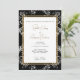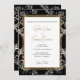 Cette Faire-part de mariage Gold et Black présente un design graphique blanc sur un arrière - plan noir avec deux bordures d'or. Le texte comprend : Le nom de la mariée et de la chambre, la date du Mariage, l'heure, l'emplacement et la réception à suivre, sur un arrière - plan blanc. Le texte inverse comprend : RSVP et vos détails de réponse. Pour personnaliser, il vous suffit d'insérer tous vos détails dans notre modèle facile, en remplaçant l'exemple de texte. N'oubliez pas de consulter la collection entière de Mariages Gold et Black pour les cartes et accessoires correspondants.