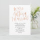 Dreamy rencontre rustique avec cette invitation de mariage simple et élégante en or rose. Ajoutez votre propre libellé dans le modèle situé sous la belle rubrique du script. Cartes de correspondance disponibles ou contactez-nous pour faire faire une pièce sur mesure !