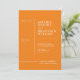 Ce faire-part de mariage orange à typographie minimale est l'invitation parfaite à envoyer à vos invités pour célébrer votre jour spécial. Le design simple et minimaliste convient à tous les couples. Cliquez pour personnaliser davantage l'emplacement du texte et utiliser les outils d'édition pour une personnalisation de couleur totale.