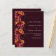 Pour une mariage élégante et romantique. Un profond arrière - plan bordeaux décoré de fleurs bordeaux, roses et oranges. Personnalisez et ajoutez vos noms et détails. 1 feuille = 1 invite imprimé bord à bord.