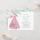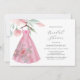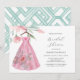 Célébrez la future mariée avec ces invitations uniques pour une fête de mariage prénuptial, créées par une petite entreprise, mettant en vedette une robe florale aquarelle époustouflante dans des tons rose et bleu doux. Le verso présente un délicat motif en treillis dans un bleu coordonné pour un supplément d'élégance.