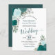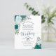 Ces invitations de mariage abordables et économiques sont le choix parfait pour allier classe, style et beauté sans se ruiner. Le design élégant présente des roses peintes à la main à l'aquarelle dans des nuances de sarcelle, de turquoise, d'aqua et de cyan, avec une profusion de feuilles d'eucalyptus et de verdure. La typographie se caractérise par une calligraphie fantaisiste et le dos est d'une couleur sarcelle profonde marbrée. Une merveilleuse façon d'inviter vos amis et votre famille à partager votre joie le jour de votre mariage sans vous ruiner.