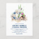 Faire-part de mariage nautiques pas chers avec fleurs tropicales, feuillage vert exotique luxuriant, coquillages, un perroquet, sable de plage, une bouée de sauvetage, vos initiales, et un modèle de texte de mariage élégant et éditable facile à personnaliser.
