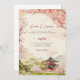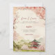 Ce faire-part de mariage présente un paysage japonais avec un cerisier en fleurs aux couleurs rose vif et vert. Idéal pour mariage japonais, mariage japonais américain, mariage asiatique ou mariage à thème japonais.