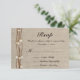 Cette carte de réponse personnalisée pour mariage est parfaite pour votre mariage sur le thème vintage ou rustique. Le produit présente un fond à motif toile de jute avec des perles enfilées sur du fil de fer rustique. NOTE - Il s'agit d'une image imprimée de haute qualité représentant la toile de jute, le fil de fer et les perles ; l'invitation ne contient pas de dentelle ou de toile de jute réelle. Merci ! N'oubliez pas de consulter notre gamme complète d'invitations et de papeterie coordonnée conçue pour correspondre à ce produit. Pour des options de formatage supplémentaires, cliquez sur le bouton bleu 'Personnaliser'. Si vous avez des demandes spéciales, n'hésitez pas à nous demander, contactez-nous, nous serions ravis de travailler avec vous pour créer quelque chose de spécial pour votre jour de mariage.