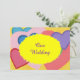 Une peinture de cœurs colorés, dont certains sont superposés dans différentes nuances, avec Our Wedding imprimé dans un ovale jaune, est imprimée sur des faire-part de mariage personnalisés. Vous pouvez facilement personnaliser le texte sur les modèles de formulaire. Merci de votre achat sur CherylsArt chez Zazzle.