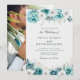 Cette invitation de mariage botanique personnalisée avec une photo florale sarcelle associe une imagerie personnalisée à des fleurs sauvages aquarelles douces. La mise en page élégante équilibre les florales romantiques avec une typographie claire pour un look raffiné et moderne.