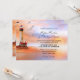 Faire-part de mariage avec une peinture romantique d'un océan avec un phare et deux mouettes au coucher du soleil. Parfait pour une plage ou un mariage de destination. Vous pouvez customiser ou supprimer des champs de texte. Il est également possible de modifier les polices et plus encore. Pour toutes les options, choisissez "customiser". Cette invitation a une carte RSVP correspondante.
