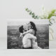 Invitez vos invités à célébrer avec vous le grand jour et montrez cette magnifique photo de fiançailles en une seule fois avec ce faire-part de mariage au format paysage horizontal. Le texte blanc se démarque sur des photographies plus claires, mais peut être changé en noir à l'aide du personnalisateur. Un simple dos de la couleur de votre choix complète le look épuré et élégant de ce faire-part.