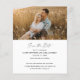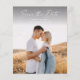 Faire-part de mariage photo avec écriture moderne à budget. Le verso comprend une deuxième photo avec des détails supplémentaires. Cliquez sur le bouton modifier pour personnaliser ce design avec vos photos et les détails de votre mariage.