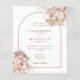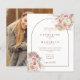 De beaux floraux aquarelles d'herbe des Pampas et une arche chic encadrent les détails de votre célébration de mariage spéciale, dans une typographie terracotta élégante et votre photo spéciale au verso de ce faire-part de mariage élégant et économique. Conçu par Thisisnotme