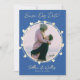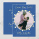 Annoncez la date de votre mariage à votre famille et à vos amis avec cette carte de sauvegarde de date de mariage photo conçue avec des cœurs dorés sur fond bleu. Pour la personnaliser, remplacez simplement la photo par votre image préférée en utilisant notre modèle. Cliquez sur AJUSTER ou REMPLIR pour couvrir l'espace et assurez-vous de centrer dans le cercle. Ensuite, insérez votre texte dans le modèle, en remplaçant les noms et la date de l'exemple. Le texte de couleur dorée au recto comprend : Save The Date, les prénoms des mariés et la date du mariage.