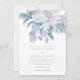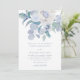 Belle faire-part de mariage florale délicate bleu poudreuse, jolie aquarelle bleue aux fleurs de style vintage et un design simple et classique avec élégante typographie de script de calligraphie. Le dos est plein photo.
