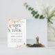 Fleurs aquarelles douces et feuillage botanique, carte de faire-part de mariage photo. La carte présente des hortensias blancs, des pivoines roses et du feuillage vert. Le dos de la carte, présenté en rose pétale, peut être personnalisé. Conçu pour correspondre à notre collection de mariage Graceful Garden.