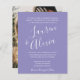 Faire-part de mariage photo Budget Script moderne - présente les noms de la mariée et de la chambre, grand et audacieux dans la typographie script moderne. Au fond de l'invitation se trouve une belle photo de la mariée et du marié. L'invitation fera partie d'une suite mariage et sera disponible en différentes couleurs. Vous pouvez facilement changer la couleur arrière - plan pour correspondre à votre thème mariage. Montré en lavande. Une invitation simple et classique avec de jolies calligraphies. * Veuillez noter qu'il s'agit d'une option budgétaire. La photo sera certainement meilleure qualité sur notre invitation à plat. Si vous préférez un stock papier plus épais et de meilleure qualité, choisissez notre invitation à plat. Nous vous recommandons de NE PAS choisir l'option satin pour l'invitation budgétaire. Conçu par Beverly Bainbridge Homespun Cottage Designs E : homespuncottagedesigns@gmail.com