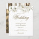 Joli faire-part de mariage fleuri blanc fleuri avec une délicate floraison printanière encadrant vos détails mariages en lettres d'or élégantes. Le verso présente votre photo spéciale. Conçu par Thisisnotme©