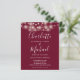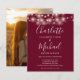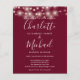 Faisant partie des jolies guirlandes lumineuses et des noms de style signature. Ce faire-part de mariage élégant et économique burgundy peut être personnalisé avec vos détails de mariage en lettrage chic et photo spéciale au verso. Conçu par Thisisnotme
