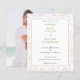 Les détails de votre invitation de mariage à budget spécial sont présentés dans une typographie moderne élégante et stylée, dans un panneau doré sur un fond de confettis arc-en-ciel colorés. Le verso présente votre propre photo spéciale ou laissez-le vide ou ajoutez une couleur de fond à votre goût. Conçu par Thisisnotme©