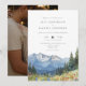 Cette élégante invitation de mariage avec une fleur sauvage de montagne à l'aquarelle peut être personnalisée avec vos informations dans une typographie chic et une photo spéciale au verso. Conçu par Thisisnotme©