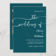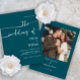 Célébrez votre amour avec cet élégant faire-part de mariage photo avec un riche arrière - plan turquoise, calligraphie moderne, et une photo personnelle du couple. L'écriture manuscrite élégante associée à des polices serif propres crée une faire-part minimaliste mais chaleureuse. Parfait pour les mariages modernes avec une touche romantique. Entièrement personnalisable pour convenir à votre style et aux détails de votre événement.