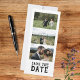 Annoncez votre jour de mariage avec notre aimant de sauvegarde de mariage à photo de script moderne, une façon élégante et personnalisée de partager votre date spéciale avec la famille et les amis. Conçu pour être à la fois beau et fonctionnel, cet aimant de mariage personnalisé est parfait pour être exposé sur le réfrigérateur comme un rappel durable de votre célébration. Le devant de l'aimant présente une mise en page à trois photos époustouflante, mettant en valeur vos photos de couple ou de fiançailles préférées, associées à un message élégant « Sauvegarder la date » dans une typographie de script moderne. Ce design accrocheur donne le ton pour un mariage contemporain et romantique. Cet aimant comprend vos noms, date de mariage, ville et état, créant un look propre, cohérent et intemporel. Idéal pour les couples à la recherche d'aimants de sauvegarde de date photo, d'aimants de mariage modernes ou de papeterie de mariage personnalisée, ce design allie simplicité, sophistication et style personnel, parfait pour les couples
