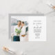 Simple faire-part de mariage photo horizontale classique. Avant : photo et texte côte à côte avec script et texte brut. Le dos est gris. Remplacez la photo existante par la vôtre. Pour modifier la disposition, cliquez sur Personnaliser, Modifier à l'aide de l'outil de conception, puis Modifier le texte. Utilisez la commande Cntl pour sélectionner et déplacer plusieurs sections à la fois.