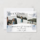 Carte de faire-part de mariage à 3 photos avec lavis aquarelle dans des tons bleus hivernaux avec superposition de neige douce.