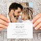 Célébrez votre histoire d'amour avec ce faire-part de mariage photo moderne et élégant. Doté d'une mise en page photo complète associée à une typographie stylée, ce modèle personnalisable est conçu pour les couples qui apprécient la papeterie mariage intemporelle et chic. Personnalisez avec vos noms, les détails du mariage et les informations RSVP pour créer une conservation unique qui reflète parfaitement votre journée spéciale. Idéal pour les mariages modernes, minimalistes et sophistiqués.