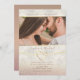 Une faire-part de mariage romantique et moderne avec une disposition photo encadrée de doux effets de rougeur et de parties scintillant rose en or. La bande inférieure présente un détail élégant en forme de coeur de cordes d'or, symbolisant l'amour éternel. Une texture de marbre chaleureuse ajoute du raffinement, ce design est idéal pour les couples qui veulent mélanger le glamour avec des touches personnelles. Idéal pour les mariages du printemps, de l'été ou de la rougeur, surtout en association avec des accents roses d'or ou de champagne.