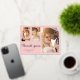 Faire-part de mariage photo remerciement rose moderne. Carte de remerciement de mariage en feuille d'or. Carte de remerciement en feuille d'or. Cette carte de remerciement de mariage en feuille d'or présente une écriture calligraphique avec Personnalisez avec vos noms et date de mariage.
