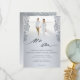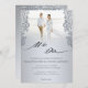 Cette élégante invitation de mariage allie un design photo contemporain avec des accents damassés argentés raffinés. Les coins supérieurs présentent des fioritures argentées complexes qui encadrent le design avec une sophistication intemporelle, tandis que la photo centrale ajoute une touche personnelle et moderne. Les détails des mariages sont affichés dans une police de caractères propre et formelle, ce qui rend la carte à la fois élégante et fonctionnelle. Un choix parfait pour les couples à la recherche d'un équilibre entre personnalisation moderne et élégance argent classique.
