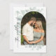 Whimsical Eucalyptus Photo Faire-part de mariage Donnez le ton pour votre journée de mariage rêvée avec ce Whimsical Eucalyptus Photo Faire-part de mariage! Dotée de délicats accents de verdure et d'un espace pour votre photo préférée, cette invitation allie charme naturel et touche personnelle et élégante. Caractéristiques du produit : Conception personnalisable : Ajoutez les détails de votre mariage et téléchargez une photo spéciale pour créer une invitation vraiment unique. Options flexibles : Choisissez de télécharger le fichier numérique pour le partage instantané ou de le faire imprimer professionnellement pour un look poli. Thème Whimsical Eucalyptus : Parfait pour les mariages rustiques, boho ou modernes, ce design ajoute une ambiance douce et romantique. Taille polyvalente : Idéal pour envoyer ou partager numériquement par SMS, email ou médias sociaux. Why You’ll Love It : Cette invitation enchanteresse mêle élégance et personnalisation, créant une première impression parfaite pour votre grand jour. Que vous imprimiez ou que vous alliez au numérique, c’est un choix intemporel que vos invités aimeront.
