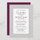 Mélangeant éléments modernes et traditionnels, notre faire-part de mariage Diamond Dot présente des détails délicats et subtils dans une palette de couleurs chic, gris colombe pâle et riche prune cabernet. Un motif arrière - plan de diamants pointillés blancs en gris clair et blanc encadre vos détails mariages dans un mélange de caractères modernes et de caractères de script traditionnels en gris fusain. Une fine bordure de prune foncé violet ajoute du contraste et une pop de couleur. Cartes inversées à la prune solide.