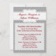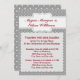 Faire-part de mariage avec arrière - plan gris et texte rouge profond. Pois blancs de chaque côté de la carte à faire-part plate. Une bannière blanche à la forme d'un ruban en haut porte le nom de la mariée et du marié. Personnalisez ce modèle avec vos informations.