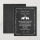 Faire-part de mariage style tableau noir avec silhouettes de Pug et cœur. Une annonce amusante pour un couple fiancé qui aime les Pugs. Personnalisez cette invitation de mariage originale avec le nom du couple heureux et les informations sur le jour du mariage. Visitez le monde de doodle de Jenn pour encore plus de produits de planification de mariage avec ce design de Pugs mignon et plus d'invitations de mariage de races de chiens.