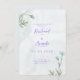 Invitation vos invités dans le style avec ce faire-part de mariage d'aquarelle magnifiquement conçu. Avec ses fleurs sauvages délicats dans les tons bleu et vert doux, cette carte élégante donne le ton parfait pour une fête romantique. Les polices modernes de style calligraphie mettent en valeur les noms du couple avec une disposition propre et des textures arrière - plans douces. Parfait pour les mariages du printemps ou de l'été, cette invitation offre un équilibre entre charme nature et sophistication contemporaine. Facilement personnalisable avec vos propres détails pour le rendre vraiment vôtre.