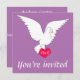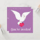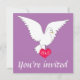 Ce magnifique faire-part de mariage est orné d'une colombe blanche sur un arrière - plan d'orchidées rayonnantes qui est un joli look pour un mariage. La colombe tient aussi sur un amour rouge entendu qui contient des initiales qui peuvent être customisées comme initiales de la mariée et du marié et est une touche romantique à l'avant de l'invitation. Le dos de l'invitation est un simple arrière - plan rayonnant de couleur orchidée avec tous les détails de l'événement heureux en écriture blanche.