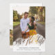 Magnifique et unique carte de faire-part de mariage avec une superposition de gaze et une découpe 'save the date' pour que votre photo apparaisse à travers dans une jolie écriture tourbillonnante. Ajoutez une autre photo au verso avec les détails de votre mariage.