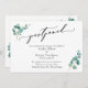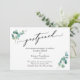 Si vos plans de mariage ont inévitablement changé, cette carte simple et élégante pourrait être l'option parfaite pour vous. Avec une police de calligraphie luxueuse, l'en-tête indique "reporté". Tout le reste est polyvalent et peut être modifié : changez la police ou les couleurs de soutien. Les coins sont accentués de brins de feuilles d'eucalyptus à l'aquarelle. Utilisez les champs du modèle pour ajouter vos informations personnelles. // 137 //